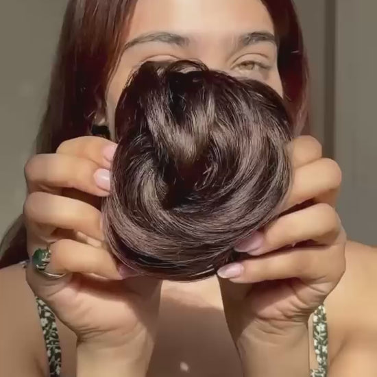 Create instant volume with our Top Knot Ponytail holder. Perfect for creating that stunning updo or messy bun, without a trip to the salon. This ponytail holder effortlessly blends in with your hair and can be restyled - it's a must-have!